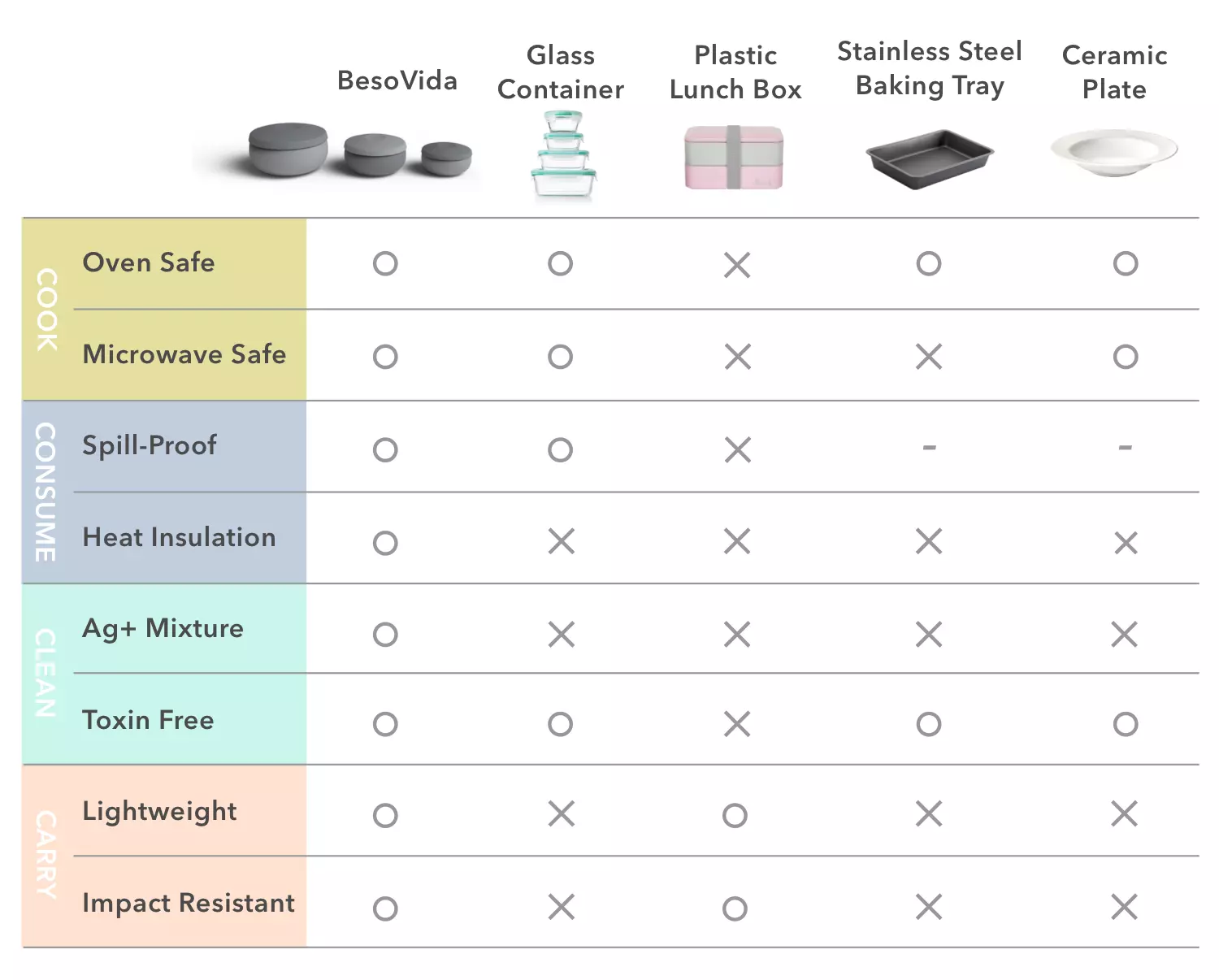 I designed a clear comparison chart showcasing silicone’s superiority: safe, durable, lightweight. Compared to traditional cookware, reinforcing trust and positioning Besovida as a smarter upgrade.